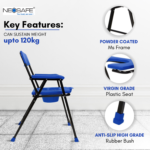 • Sturdy Construction: Crafted from durable materials, this commode chair can support weights up to 150 kg, providing a stable and secure seating experience.