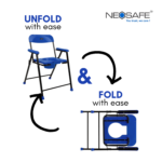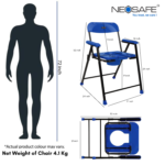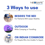 • Compact and Foldable: With its foldable design, the commode chair can be easily stored or transported when not in use, making it convenient for travel or limited space.