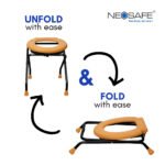 • ♿ Comfortable & Foldable Design – Soft padded seat for extra comfort. Foldable and lightweight, making it easy to store and carry, perfect for small spaces and travel use.