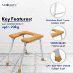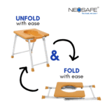• ♿ Comfortable & Foldable Design – Soft padded seat for extra comfort. Foldable and lightweight, making it easy to store and carry, perfect for small spaces and travel use.